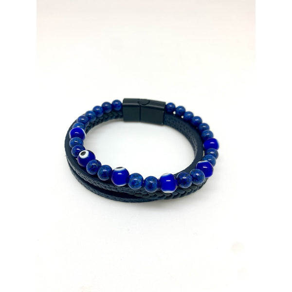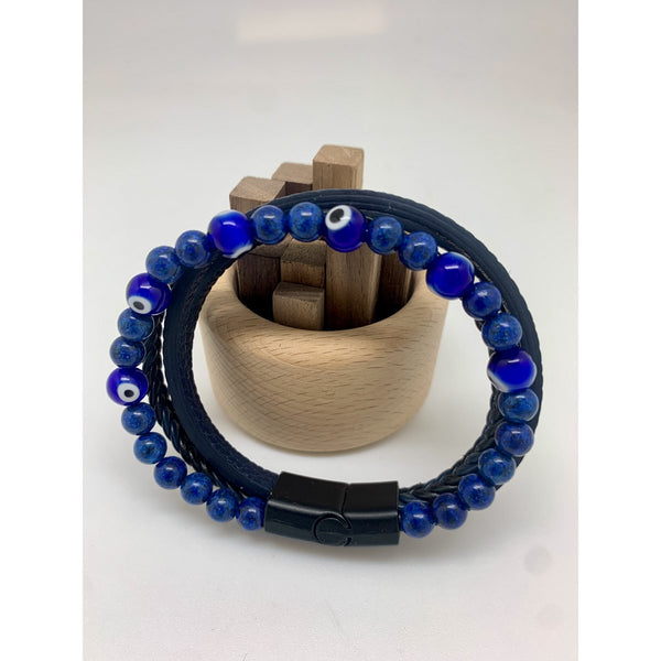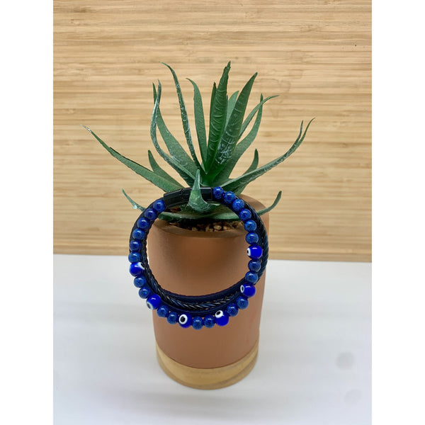 Voeg een vleugje mysterie en bescherming toe aan je stijl met onze gevlochten leren armband, versierd met de fascinerende Turkse oogglassteen. Dit unieke sieraad combineert de authenticiteit van geweven leer met het iconische 8 mm glazen Turk's Eye, erkend als symbool van geluk en bescherming tegen het boze oog. Deze armband is ontworpen om perfect te passen om volwassen herenpolsen van 18 tot 20 cm en is een veelzijdig accessoire dat goed past bij zowel casual outfits als meer formele ensembles, en biedt niet alleen stijl maar ook een vleugje beschermende vriendelijkheid.