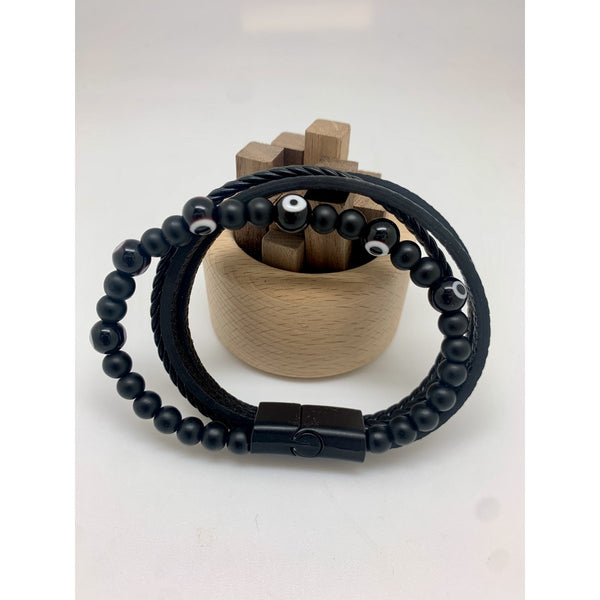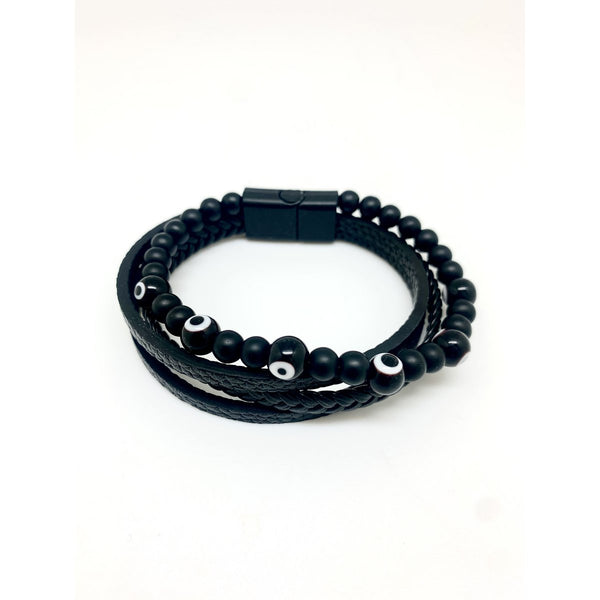 Ontdek de gevlochten leren armband versierd met een boeiend zwart Turk's Eye, een stuk dat op subtiele wijze mysterie en beschermende stijl combineert. Dit uitzonderlijke sieraad combineert de rijke textuur van echt gevlochten leer met de eigenheid van het Turk's Eye in een zwarte 8 mm-versie en biedt een moderne interpretatie van een traditioneel symbool van bescherming. Verstelbaar en ontworpen voor een breed scala aan volwassen herenpolsen van 19 tot 20 inch. Deze armband is de perfecte metgezel voor elke gelegenheid en voegt een vleugje mystieke elegantie toe aan je outfit en symboliseert tegelijkertijd de bescherming tegen negatieve energieën.