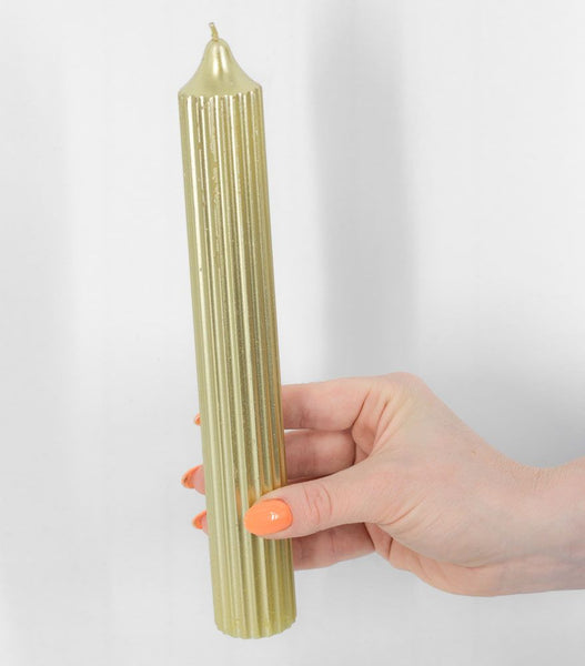 Deze dinerkaars met ribbel is 25cm lang.