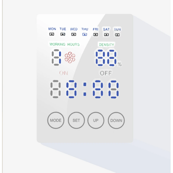 Met de instellingen kunt u de geurconcentratie, duur en gebruiksdagen aanpassen aan de voorkeuren van de gebruiker.